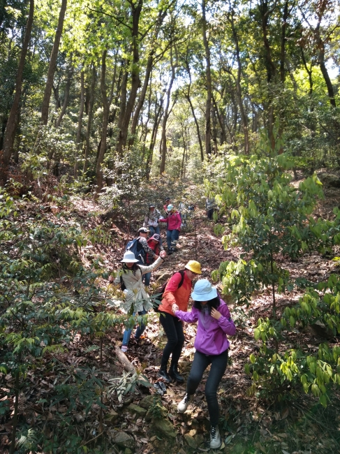 实习期间,院党委书记刘婕老师、辅导员吴丹和摄影李立老师还带来了同学们的生活补给来天童慰问实习的老师同学们。三部分实习结束后进行了植物识别考试,为此同学们每天晚上都十分认真的复习整理各植物的特征。实习最后是各小组小论文的选题和野外实地调查,各个小组都认真思考,勇于创新,纷纷确定了既富于创新意味又具有实际意义的选题并进行野外样地调查。最后一天的实习结束,同学们欢聚一堂、畅所欲言、共诉大学生活,为天童野外实习画上了圆满的句点。