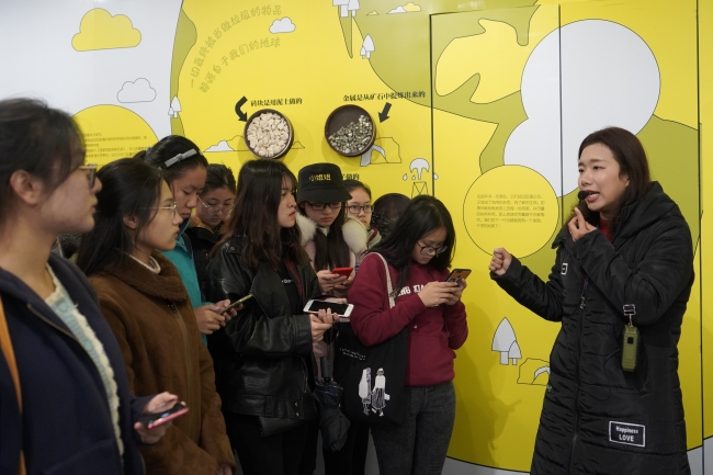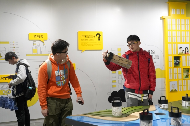 随后进入展厅,讲解老师详细地介绍了不同的垃圾类型,还有有趣的垃圾降解台,同学们纷纷好奇地上前围观尝试。
