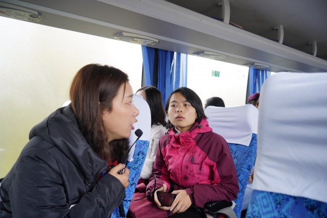 在职工食堂用过午餐后进入了填埋场参观环节。在大巴上,同学们看见了一座座垃圾山,带队老师为大家解释垃圾山也分污泥填埋区、垃圾填埋区及飞灰填埋区等,并且解释了为何地势会有高低、树木又矮又细的问题,这些有趣的思考极大地激发了同学们的兴趣。下车后,张勇老师用有趣的为故事大家讲解了为何上海实用集装箱装垃圾,以及垃圾发电的一些知识,生动形象,发人深省。