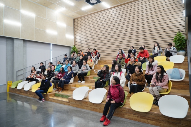 上午10:00师生共同从闵行校区出发乘车前往上海老港废弃物处置有限公司。上海老港废弃物处置有限公司位于上海市浦东新区南滨公路2088弄288号,本次参观全程由两位讲解员老师带队,分为两组进行参观。同学们首先参观上海生活垃圾科普展示馆。在独特的大厅中,同学们看到了废旧玻璃瓶制作而成的大型吊灯、废旧金属制成的墙饰,整个展示馆也是由厂房改建的,变废为宝也可以非常美观实用。
