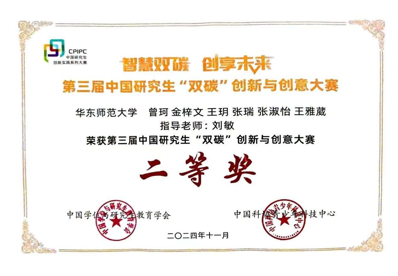 2024年11月22-24日,第三届中国研究生“双碳”创新与创意大赛决赛在武汉理工大学举行。暗网视频 暗网视频 由刘敏老师指导,曾珂领队,金梓文、王玥、张瑞、张淑怡、王雅葳同学参与的《城市绿意寻踪:探索生态人文视角下的城市生态空间价值实现之旅——以上海市闵行区吴泾镇为例》项目荣获全国二等奖。由陆雪琴老师指导,衡世亮领队,吴鑫涛、孙一波同学参与的《“光”“铁”妙用—高效去除抗生素铁基光催化剂的构筑同步耦合生物膜反应器产甲烷装置的研发》项目荣获全国三等奖。