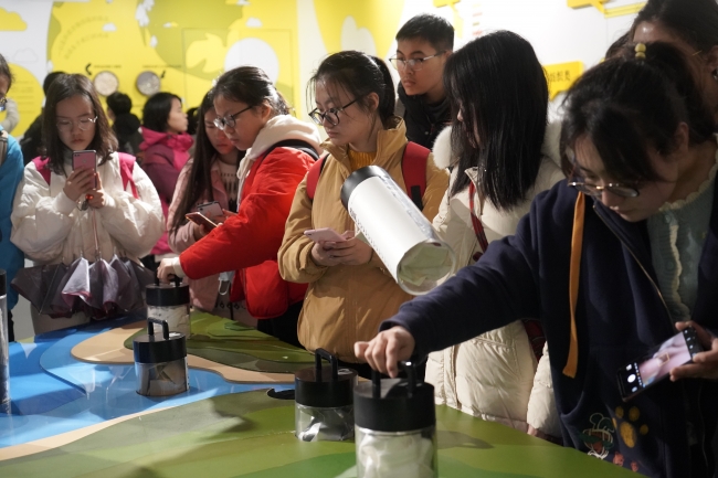 随后进入展厅,讲解老师详细地介绍了不同的垃圾类型,还有有趣的垃圾降解台,同学们纷纷好奇地上前围观尝试。