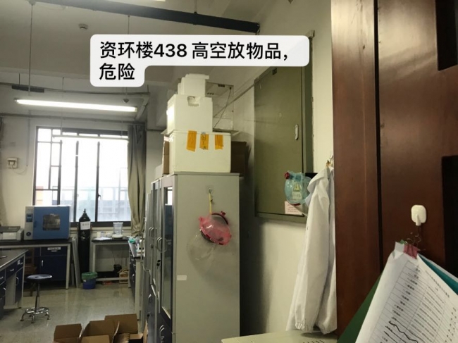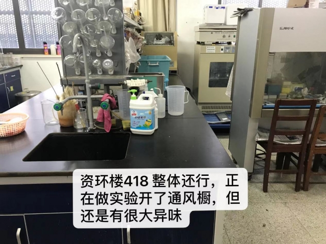 其中,生科辅楼的307实验室(张秋卓老师),资环楼128实验室(杨海波老师)和资环楼246实验室(何岩老师)通风良好,废液及时倾倒存量较少,高功率设备使用规范,实验室无杂物堆放,整体印象非常优秀。资环楼448实验室(徐启新老师),在实验室空间整洁和通风的工作上存在较大问题,整体印象为差。其余的实验室均为合格。