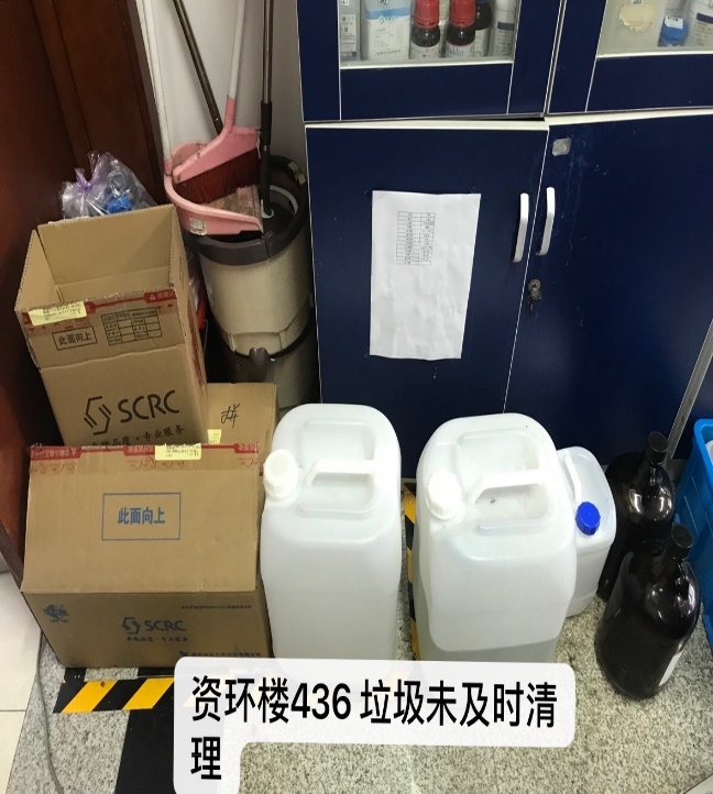 的安全小卫士联合来自化学与分子工程学院的小卫士进行的第二次专项检查。实验室排查过程中还发现了一些其他问题,其中资环楼418实验室(张明老师),异味很大,此问题在多次检查中重复出现,建议改进通风设施。资环楼446实验室(由文辉老师),无人房间,房间不用应关好门,防止他人误入。还对上次的检查表现较差的实验室和办公室进行了重点检查,资环楼436实验室(赵雅萍老师),上次检查时钢瓶未固定,本次有所改善,钢瓶已经固定。针对上个月表现较差的资环楼444办公室(阎恩荣老师),进行了重点回访,整体环境较上次有了很大改善,杂物堆放问题明显减少,在此表扬。