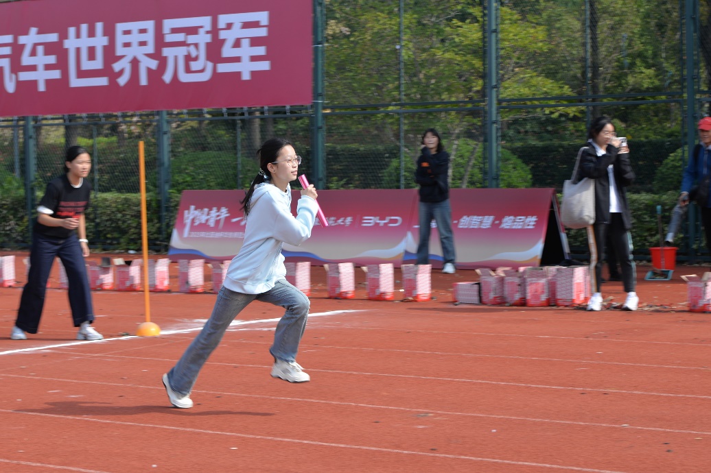 在随后两天的运动会中,同学们也分别投身4*400混合接力赛、拔河、阳光伙伴等项目的比赛。在接力赛的跑道上,同学们默契接力,似灵动飞鸟般穿梭赛道,以青春无敌的姿态冲向终点;在阳光伙伴的赛场上,绑腿齐行,口号如雷,以无畏之姿、蓬勃之力在跑道上燃爆青春,奋勇冲向胜利。在个人项目中,轻盈如燕、步伐坚定,不断突破超越自我,于跑道、沙坑、跳台上勾勒出一幅幅灵动而绚烂的青春画卷。最终,同学们在4*400混合接力获第四名、跳圈接力赛中获第五名、单脚跳接力赛中获第五名;樊时明同学在男子铅球中获第五名。