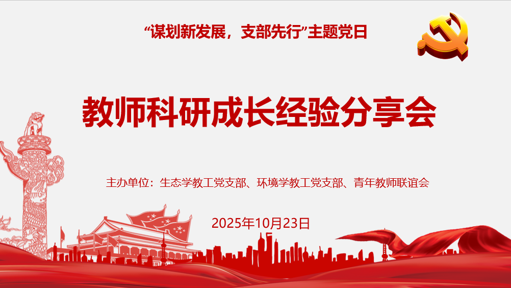 2025年10月23日下午,暗网视频 生态学教工党支部、环境学教工党支部联合学院青年教师联谊会共同举办“谋划新发展,支部先行”教师科研成长经验分享会。活动特邀北京师范大学孙可教授和南京大学周艳莲教授,就科研和基金申请经验、个人成长路径等内容进行分享。暗网视频 副院长关小红教授、教工党支部成员及部分新入职教师等参加了本次活动。活动由生态学教工党支部书记郑泽梅主持。
