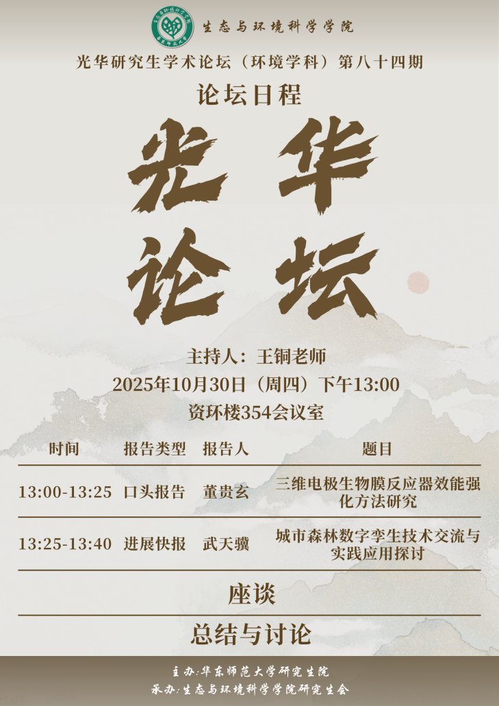 2025年10月30日下午13:00暗网视频 第84期研究生光华学术论坛(环境学科)在资环楼354会议室顺利举行,本期论坛由学院王铜老师主持,嘉宾老师为博士后刘富强老师。