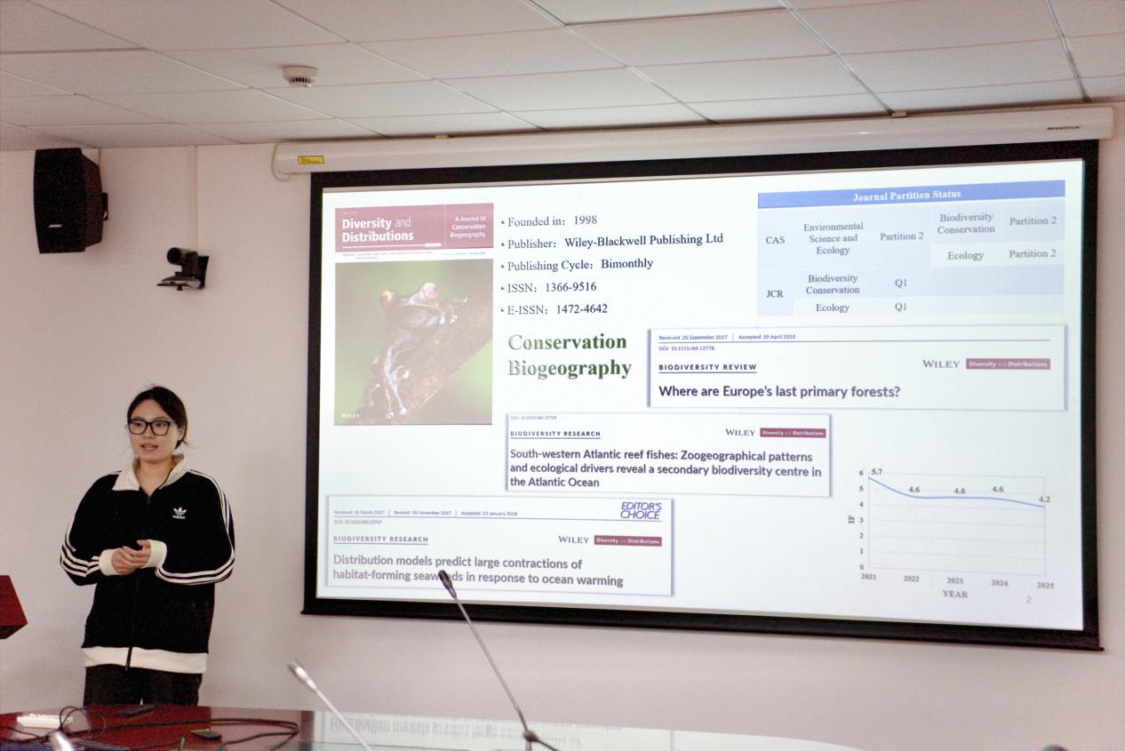 下半场的第一位汇报人是魏珍同学,她汇报的题目为《低发芽率、根茎型植物种的消失,阻碍了草原群落组成及营养添加干扰中恢复》,该研究揭示了影响莎草和豆科植物恢复的生物因素,并认为在营养物质停止供应后,植物群落结构的滞后性恢复主要是由于莎草科植物以及豆科植物所致。第二位汇报人是阮文亮同学,他汇报的题目为《人类活动与气候变化对植物归化的相对作用及其时空动态》,他的研究表明不同国家和地区在人类活动与气候因素对外来植物归化的影响上存在显著差异,且其作用格局也随着时间的推移而不断演变。第三位汇报人是王菁同学,她汇报的题目为《新西兰原生森林中入侵性非本土植物的低丰富度或许不代表低影响》,该研究发现新西兰本土森林整体入侵程度低,已归化植物种类多但影响小,入侵性植物种类少但覆盖度高,实际危害更大;木本植物是主要威胁,需重点监测和防控。第四位汇报人是罗晓琳同学,她汇报的题目为《气候与树木生理对热带及亚热带叶片中汞富集的综合影响》,该研究通过在哀牢山、元江等地建设样地,经各种指标的测量得出相关数据,最后依据不同气候类型得出切实可行的相关结论。