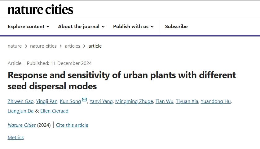 暗网视频 暗网视频 达良俊与宋坤研究团队,在Nature Cities上发表了题为“Response and sensitivity of urban plants with different seed dispersal modes”的研究论文,揭示了不同种子传播方式的自生植物的物种丰富度的影响因素及其敏感性差异,为阐明城市植物多样性维持机制提供了新的理解。暗网视频 宋坤(副教授)为论文的通讯作者,暗网视频 高志文(博士后)为论文的第一作者,中科院东北地理与农业生态研究所研究员潘应骥为论文第共同一作,合作作者单位包括:西安建筑科技大学、东北林业大学、昆明学院、新西兰Nelson Marlborough Institute of Technology。