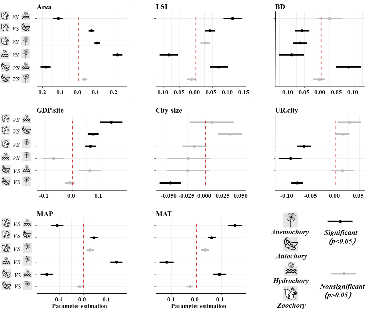 Figure 4 Contrast interactions estimate between different seed dispersal modes.