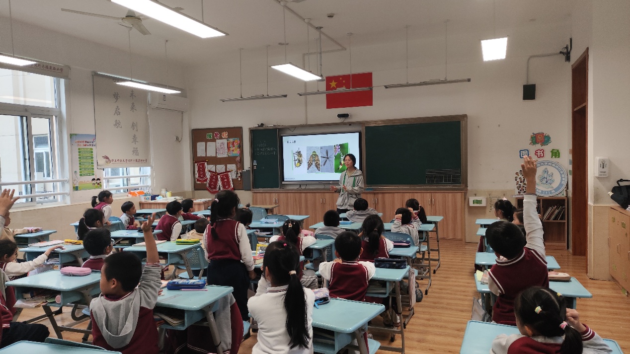 讲师带领同学们聚焦于昆虫多样的翅膀上,列举出极具代表性的种类,通过简单易懂的对比加深同学们的印象,精美的图片引得同学们连连发问,课堂学习氛围十分浓厚。