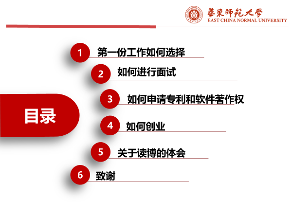 最后一位分享的是李根同学,他目前就职于生态环境部太湖流域东海海域生态环境监督管理局生态环境监测与科学研究中心。他首先比较了博士毕业生就业四大方向,即企业、公务员和事业单位、高校,以及创业的优缺点。然后,他强调求职时信息收集和自我认知的重要性,要选择自己擅长的赛道,要认清就业形势,同时也要遵从自己内心。此外,他还分享了入职一年的心得,鼓励同学们在未来职场中要不断学习、减少焦虑、保持积极的心态。