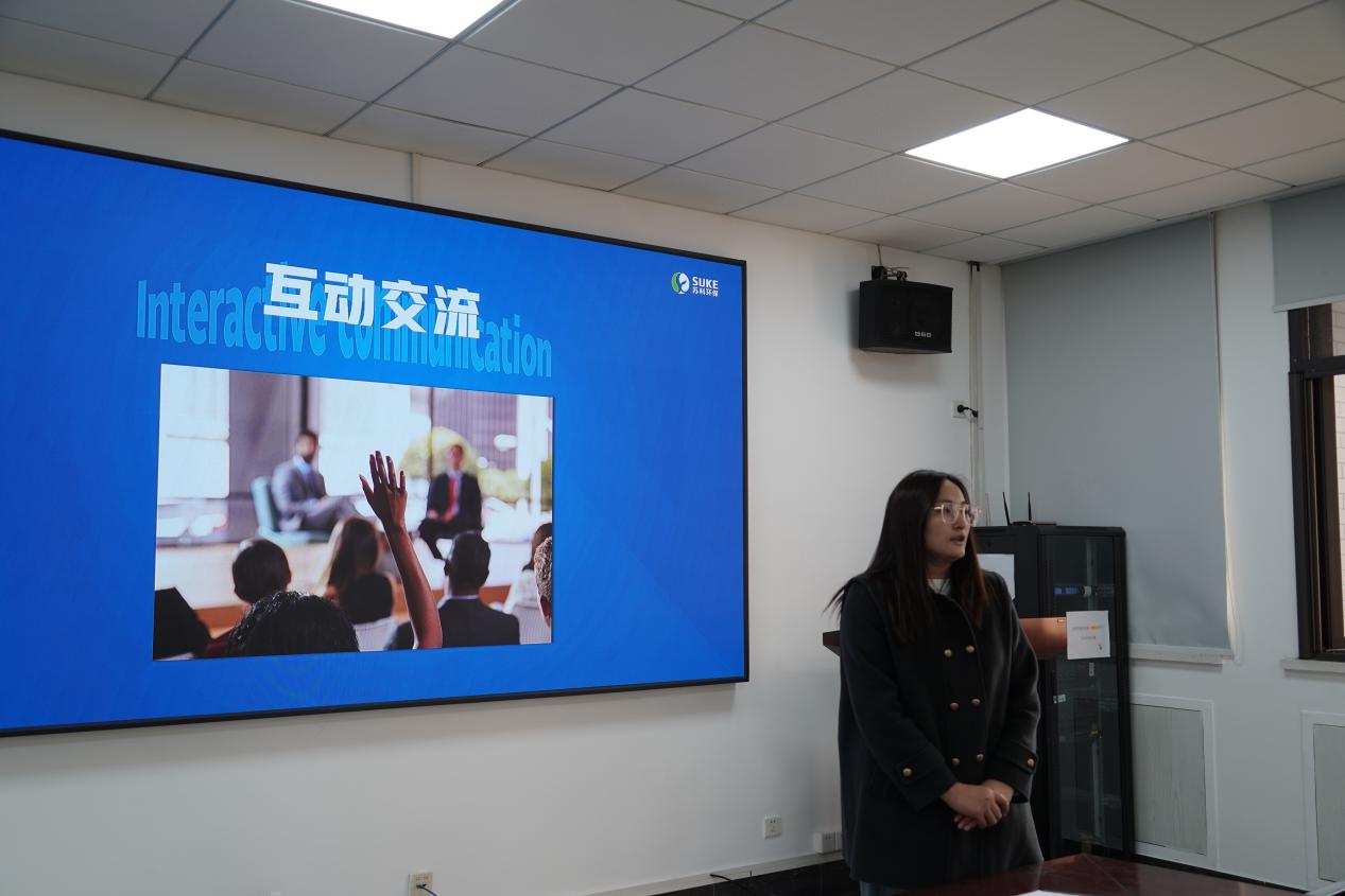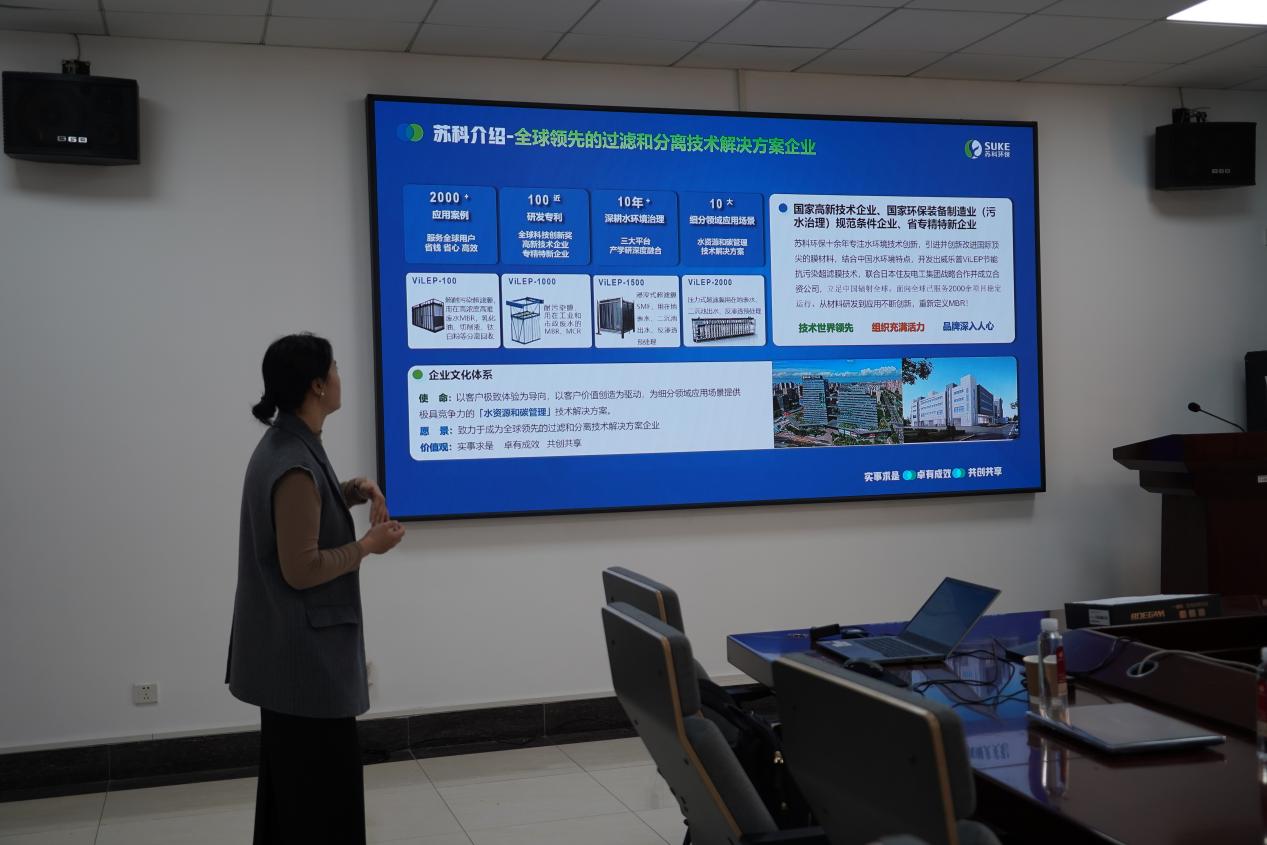 在吴丹简单介绍本次活动之后,赵艳向在场同学详细介绍了公司概况。她表示,苏科环保作为业内领先的环保科技企业,一直致力于环保技术的研发与应用,为加快经济社会发展绿色转型贡献力量。赵艳分享了公司近年来取得的团队成就,包括成功实施的多个环保项目以及荣获的行业奖项。
