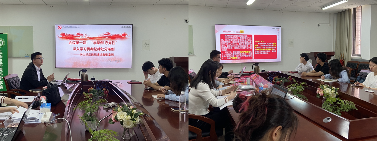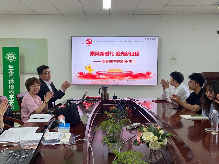 2021级环境学硕士研究生党支部在闵行校区资环楼435室开展了毕业季专题组织生活。本次组织生活以“乘风新时代,追光新征程”为主题,包括“纪律处分条例学习、支部组织生活回顾、毕业感言接力”三个部分。学院专职组织员张琪、支部指导教师吴丹以及全体党员同志到场参会。