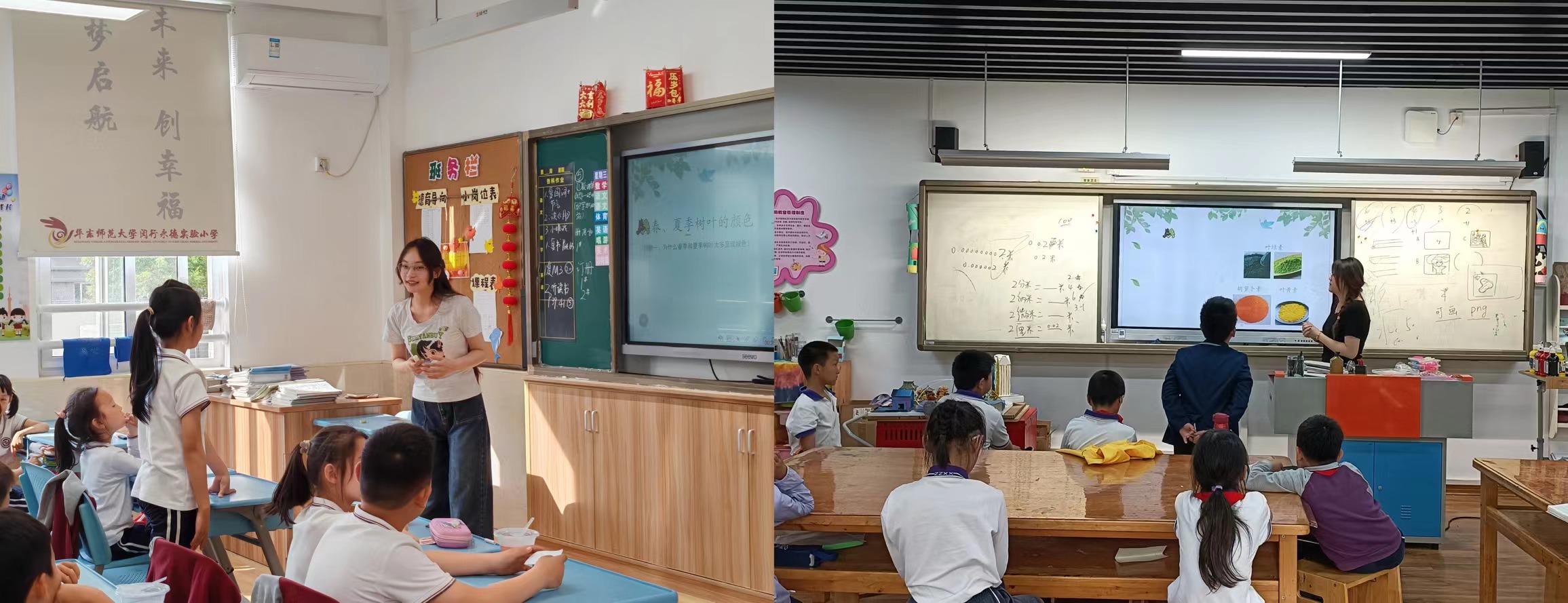 接下来,老师们又以不同季节树叶颜色的变化为切入点,将树叶类比人,生动形象地向同学们解释了影响树叶颜色变化的因素。“能感受到冷热”、“喜欢晒太阳”、“需要喝水”等描述让同学们眼前一亮。