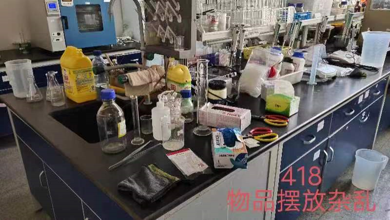 本次检查中所有实验室评分都在90分以上,其中有23个实验室获得满分,整体情况与这学期第一轮检查结果相比有明显提高,说明实验室安全问题得到了大家的重视。在此次检查中,大部分实验室物品摆放规范整齐、卫生情况良好、管理及防护到位,但仍有部分实验室存在灭火器周围存在遮挡、无值日表、实验物品和垃圾堆放杂乱等问题,希望各位同学能予以重视,防患于未然。