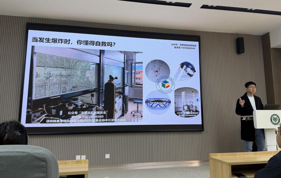 学院安全员王娟老师结合日常检查,指出目前实验室在个人防护、垃圾分类、药品存放等方面仍存在不规范行为,希望以此次培训为契机,进一步提高全员安全意识,落实各项安全管理要求。