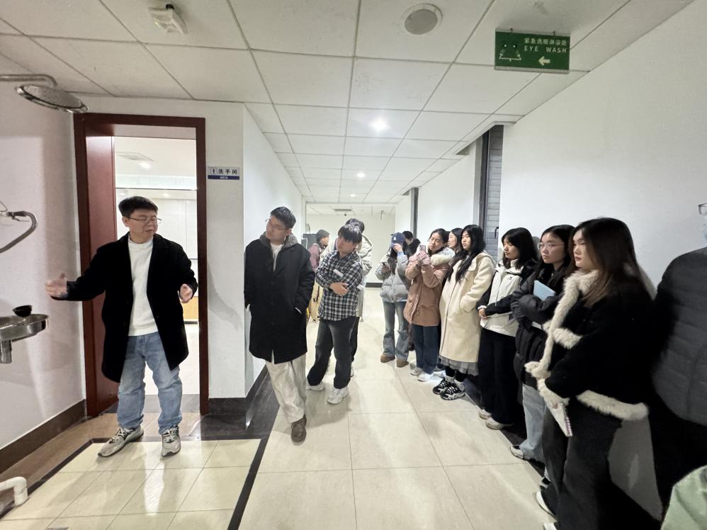 实操演练部分,九名学生通过情景设计,生动模拟了高压蒸汽灭菌器超温超压报警后的应急处置全流程,涵盖人员疏散、现场隔离、逐级上报、事后调查与评估等规范流程。此外,屈文军现场演示了紧急喷淋与洗眼装置的正确使用方法,提升师生在突发情况下的自救互救能力。