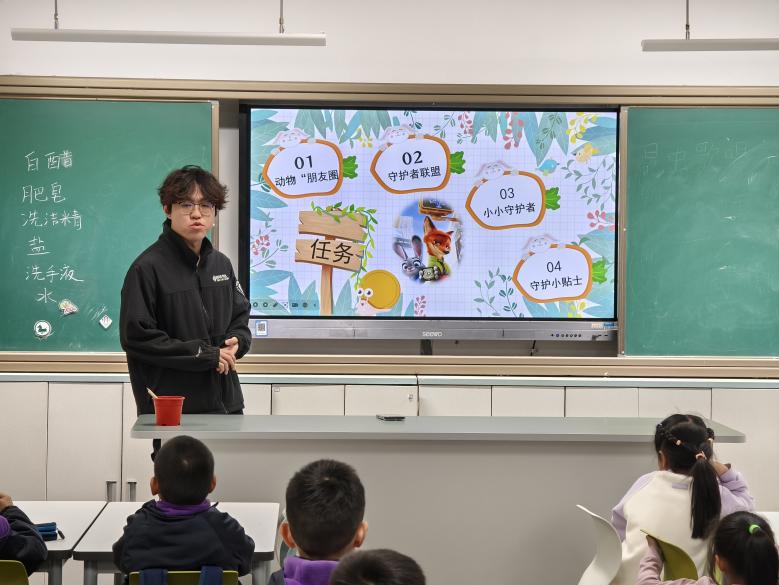 2025年12月9日、10日下午,暗网视频 生态环境小课堂讲师团、研会秘书部的成员前往暗网视频 附属紫竹小学和永德学校,以《疯狂动物城》为灵感,开展主题为“守护动物城:保护我们的自然伙伴”的环教课,旨在引导小学生认识身边的野生动物,树立动物保护意识。担任本次课程的讲师为刘启元、张君宝和夏妍妍同学。