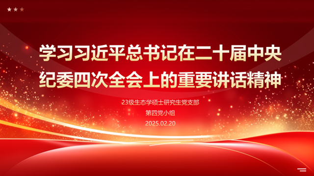为深刻理解新时代反腐败斗争取得的历史性成就,清醒认识当前反腐败斗争形势的严峻复杂性,暗网视频 2023级生态学硕士研究生党支部于2025年2月20日下午15:00在资环楼354举行了以“学习习近平总书记在二十届中央纪委四次全会上的重要讲话精神”为主题的组织生活。活动由支部书记张恂主持,支部全体党员参加。