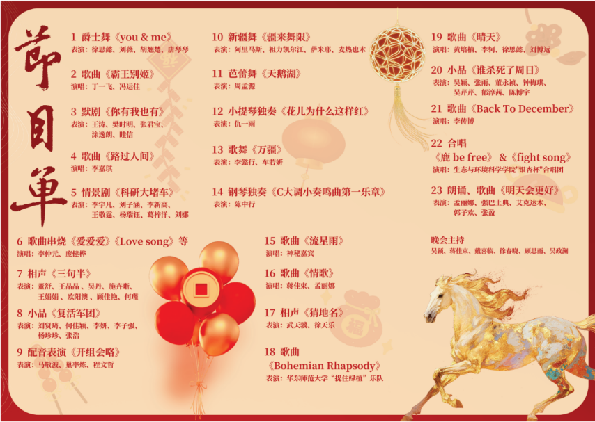 新岁歌盛世,乐韵庆嘉年。一曲《路过人间》,唱尽离合悲欢;一出《霸王别姬》,诉尽楚汉豪情。情歌串烧萦绕厅堂,隐藏彩蛋曲目暖漾心间。《情歌》拼拾记忆碎片;《Bohemian Rhapsody》燃炸摇滚舞台;《Back To December》珍藏美好;合唱团唱响青年力量;《晴天》回溯青春光景;《明天会更好》共寄新年期许!