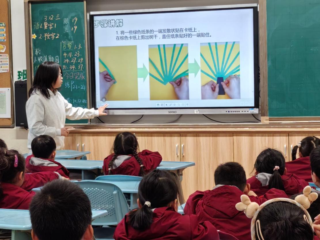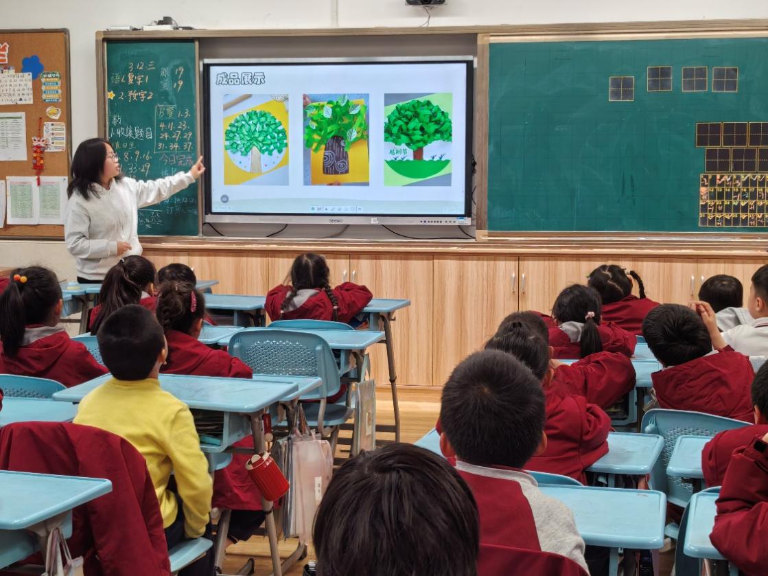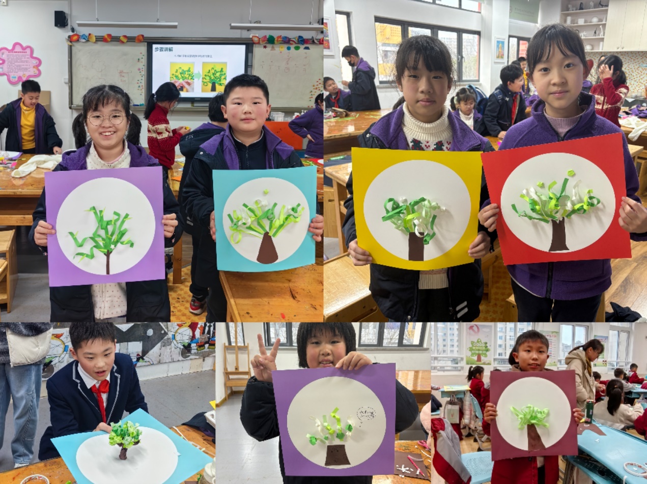 制作完成后,同学们相互展示自己的作品并交流创意与想法。在一片欢声笑语中,此次生态环境小课堂落下了帷幕。小小的纸片却有着大大的创意。这个生机盎然的春天,同学们用自己的想象力种下了属于自己的小树。
