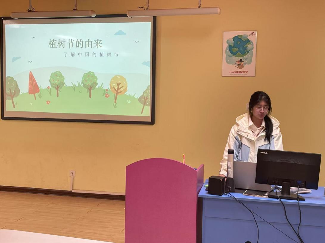 讲师在普及植树节知识