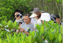 19日一早,师生们首先对漳江口红树林植被的整体分布状况进行了踏查,并初步调研了红树植物的生长、生态适应特征。虽然红树林里的植物种类比较简单,但是红树林周边的海堤上草木茂盛,长满了形形色色的草本植物。在踏查中,同学们发现了许多从未见过的植物,如苦郎树、红毛草、小刀豆等,也认出了一些入侵植物,如白花鬼针草。同学们一边听着讲解,一边采集标本,渐渐地对当地植物的情况有了初步的认识。另外,也理解了鱼塘开挖等人类干扰活动所导致的外来入侵植物对红树林构成的威胁。