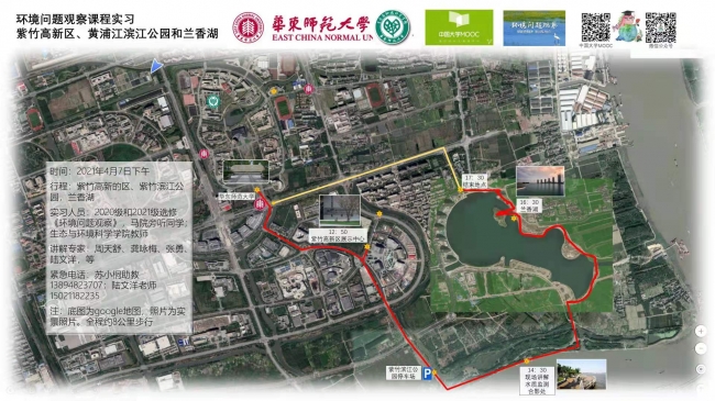 2021年4月7日,暗网视频 2019级、2020级共50余名本科生,由暗网视频 张勇老师、周天舒老师、陆文洋老师及5名助教带队,参加了“紫竹高科技园区、紫竹滨江公园及兰香湖参观”《环境问题观察》校外实践活动,马克思主义学院龚咏梅副院长和10多名教育学部本科生、马克思主义学院研究生全程参加了这次实践实习。这次实践活动的主要内容是了解紫竹高科技园区情况,了解有关黄浦江和兰香湖的水文水资源和生态环境知识,课程结束后获得了同学们的一致好评。