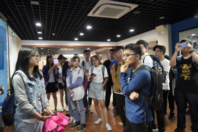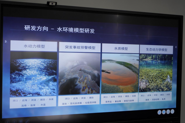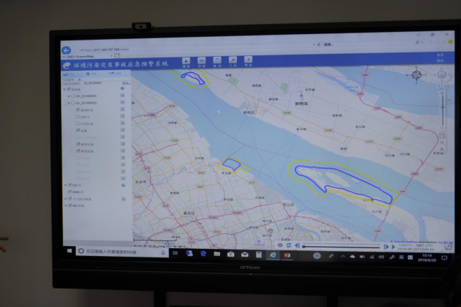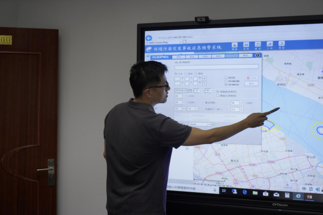 最后大家一同参观了水污染模拟工程技术中心,工作人员主要向同学们介绍了水环境模型研发的简要过程,并且向大家具体展示了假设溢油情况下,水污染模拟工程技术中心是如何通过突发事故预警模型来进行预测的。