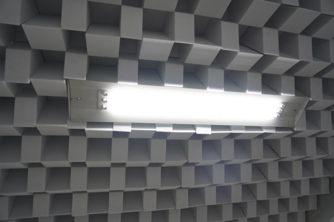 接着大家前往消声室中体验了什么是半消声室,工作人员也向同学们介绍了半消声室、消声室的日常工作是如何进行的。
