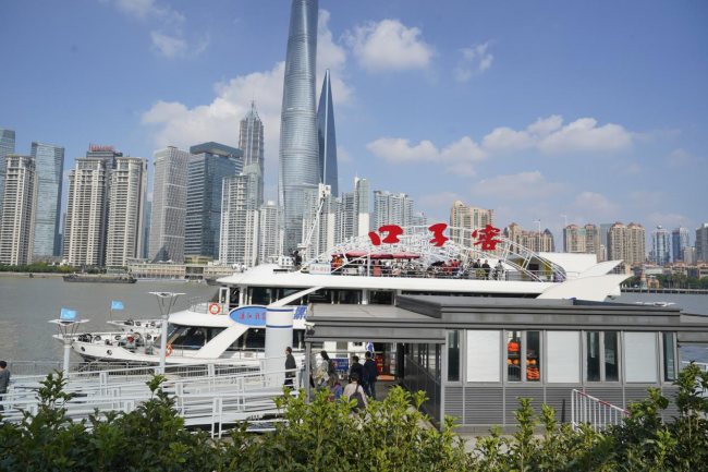 一上船同学们都被陆家嘴的高楼大厦所吸引,代表魔都的四座标志性建筑——东方明珠塔、金茂大厦、上海环球金融中心、上海中心,它们是中国改革开放的象征和上海现代化建设的缩影。