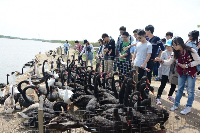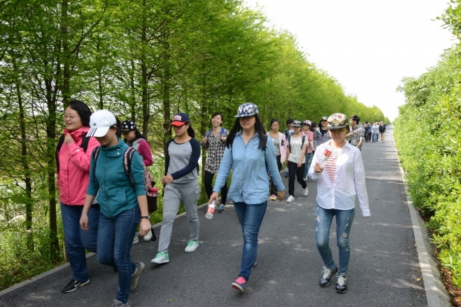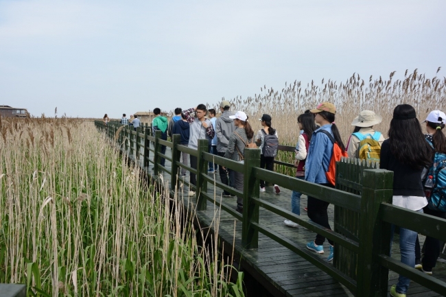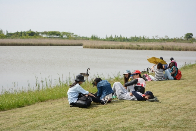 下午1点,大家来到崇明东滩湿地公园和崇明东滩鸟类国家级自然保护区。这里全球最重要的湿地生态,是西伯利亚至澳大利亚路线上过境候鸟迁徙路线上的重要停歇地、越冬候鸟的重要栖息地,每年均有近100万只次迁徙水鸟在此栖息过境。