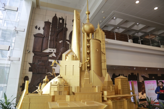 入馆后,迎面而来的是雕塑“上海之晨”,柳林老师通过该艺术作品向同学们介绍了上海市的城市发展进程以及建筑设计理念。