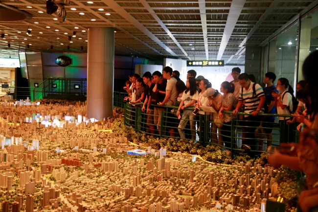 上午8:00,同学们从闵行校区乘车出发,一起带着好奇、新颖、求知的心情踏入了上海城市规划展示馆,这个位于上海市中心、西临人民广场、向全国人民展示上海“城市、人文、环境、发展”精神的重要窗口。入馆后,张勇老师向同学们介绍了上海市的城市发展进程,同时也请上海的同学各自分享了自己所处的区县的故事。
