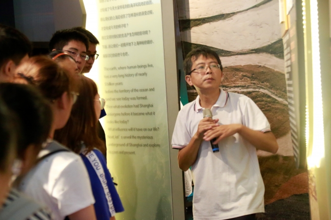 之后,柳林老师向大家介绍上海市的城市规划情况及基本地质环境情况,并结合上海市城市建设中拔地而起的建筑物对地质环境的影响,生动形象地讲解了上海市的地面沉降情况、典型建筑物地面沉降情况和上海市主要存在的地质环境问题。讲解结束后,同学们自由参观了展馆内的苏州河整治、上海市大气环境治理等展示模块。