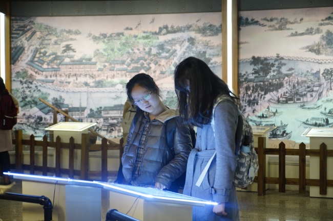 结束丽娃河的参观讲解后,老师与同学们共同乘车前往苏州河梦清园水环境治理展示中心。展馆共分三层,一楼为序厅“印象苏州河”,主要介绍了苏州河的地理位置及上海的水利系统;二楼以“污染沉重的代价”为主题,图文并茂地向大家展出了古代和近代苏州河的污染情况及污染造成的危害;三楼为“未来苏州河”,展出了近年来苏州河治理过程和治理成效。