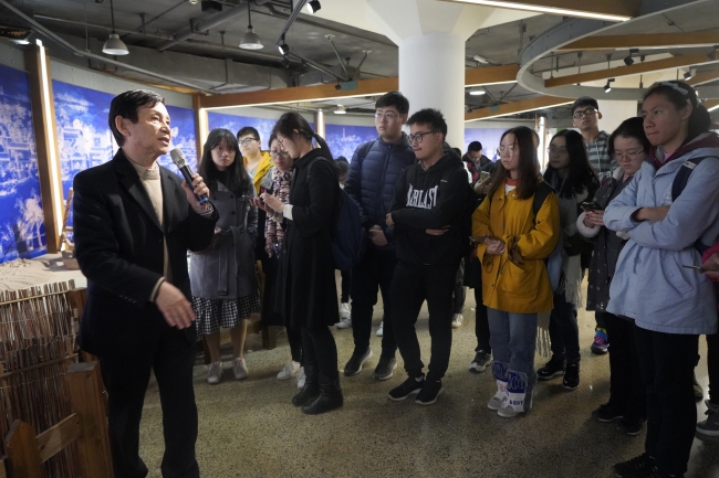 在讲解人员的带领下,同学们开始了苏州河工业文明展示室内馆的参观。室内展示面积约800平方米,以丰富的文物展品、多样的展示手段,以历史为时间轴、以苏州河为空间轴,再现了上海开埠至今苏州河沿线工业文明的风雨历程和辉煌成就。