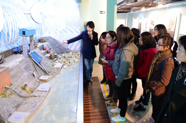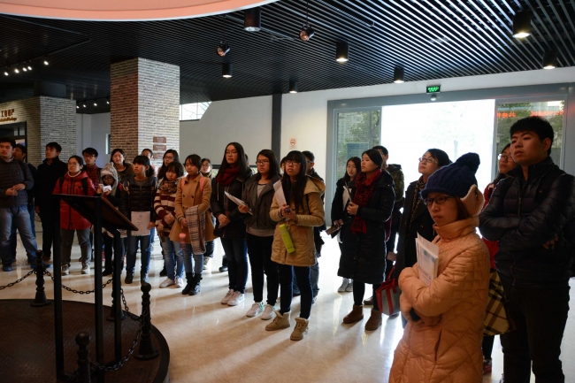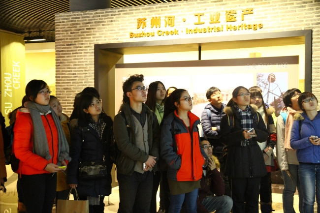 上午9:50全体师生坐校车从闵行校区出发前往苏州河工业文明展示馆。到达之后全体师生分成四个小组,依次先后由专业讲解员带领参观。苏州河工业文明展示馆以历史为时间轴、以苏州河为空间轴,展现了自上海开埠至今苏州河沿线工业文明的风雨历程和辉煌成就。