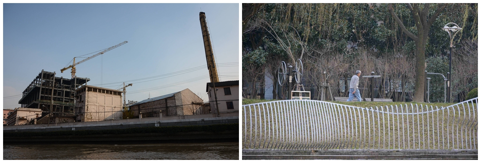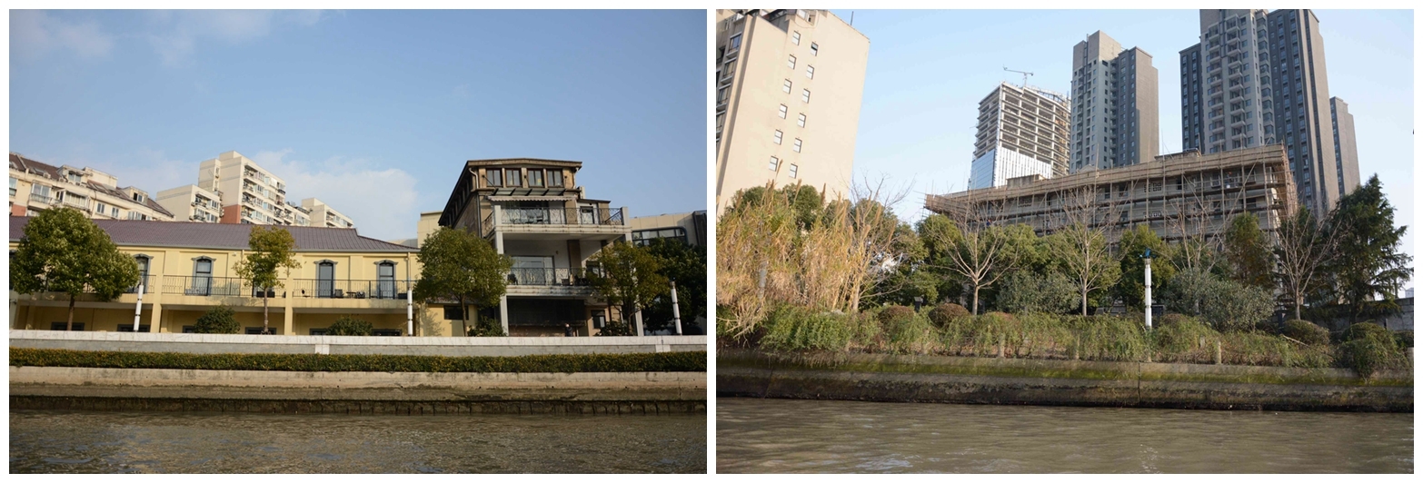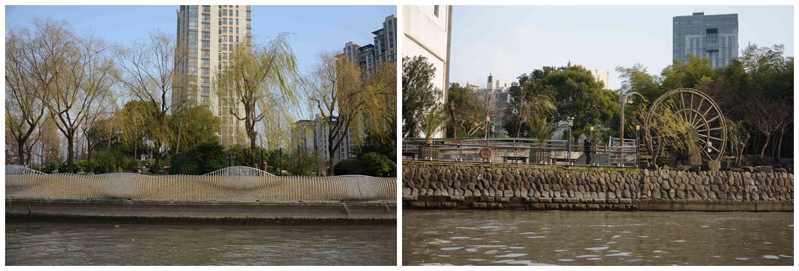 午餐后,各组师生从丹巴路码头乘坐苏州河游船前往苏州河昌化路码头。大家在游船上欣赏了苏州河沿岸的自然景观、人工景观以及一些被保留下来的近代工业旧址,同时也近距离地观察了苏州河目前的水质状况和生态状况。上岸后,大家步行至苏州河梦清园水环境治理展示中心进行参观。