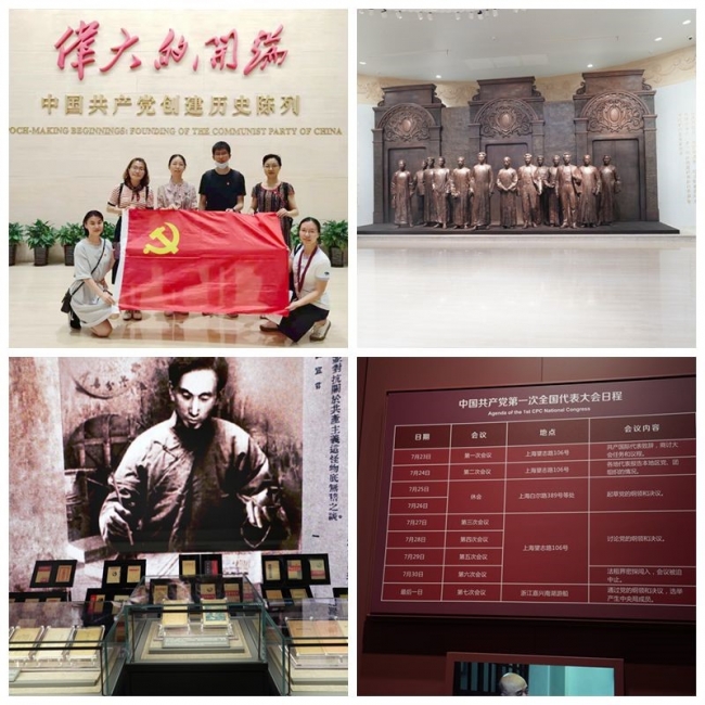中共一大纪念馆经过将近两年的建设,以全新面貌迎接建党百年。纪念馆展厅以《伟大的开端》为主题,分为五个部分,第一部分“前仆后继 救亡图存”、第二部分“民众觉醒 主义抉择”、第三部分“早期组织 星火初燃”、第四部分“开天辟地 日出东方”和第五部分“砥砺前行 光辉历程”。展馆围绕“初心使命”,通过图片、影像、文字和实物生动形象的展示了中国共产党的诞生历程,参加活动的老师同学在展示资料前驻足观摩、认真学习。在参观结束后,20级全体党员学生来到宣誓墙前,吴丹老师带领支部党员同志重温入党誓词,进行入党宣誓。宣誓完毕,大家深受触动,纷纷表示更加坚定了自己的入党初心和理想信念。在中共一大会址,大家目睹了当年中共一大筹备过程中诸多的场景,感受到会议召开的艰辛不易,表示今后要不断发扬党的优良传统,为实现中华民族的伟大复兴的努力奋斗。