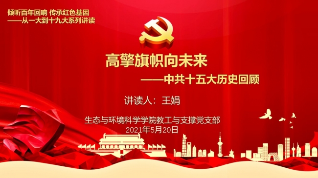 第十三讲“高擎旗帜向未来——中共十五大历史回顾”由管理与支撑教工党支部党员王娟讲读。王娟老师为大家介绍了十五大召开的历史背景、大会主题、会议议程和取得的理论成果。党的十五大是在中国改革开放和社会主义现代化建设发展的关键时刻召开的一次承前启后、继往开来的大会;是高举邓小平理论伟大旗帜,保证全党继承邓小平遗志,坚定不移地沿着十一届三中全会以来正确路线胜利前进的大会。十五大首次使用“邓小平理论”概念,并提出了社会主义初级阶段的基本纲领,规划了跨世纪发展的战略部署。大会通过的《中国共产党章程修正案》明确规定把邓小平理论确立为党的指导思想。中共十五大对于动员全党和全国各族人民团结奋斗,把建设有中国特色社会主义事业全面推向21世纪具有重大意义。