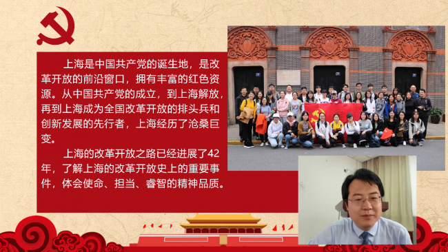 二、根据上级党委的要求,环境专业教工党支部书记张勇以“深入学习“四史”,坚守初心使命——上海变迁故事”进行了一场党课,首先从专业角度谈了认识上的转变,理解要把学习贯彻党的创新理论作为思想武装的重中之重,并同学习党史、新中国史、改革开放史、社会主义发展史(“四史”)结合起来。结合环境专业发展的现状,特别是上海市生态环境问题在改革开放40年来的发展变化,从苏州河污染治理、人均绿化面积改善、自来水水质提高、浦东开发放的环境影响评价、黄浦江与上海的变迁等,讲了绿水青山就是金山银山的背景下,环境专业如何更好的为上海城市发展做出新的贡献。