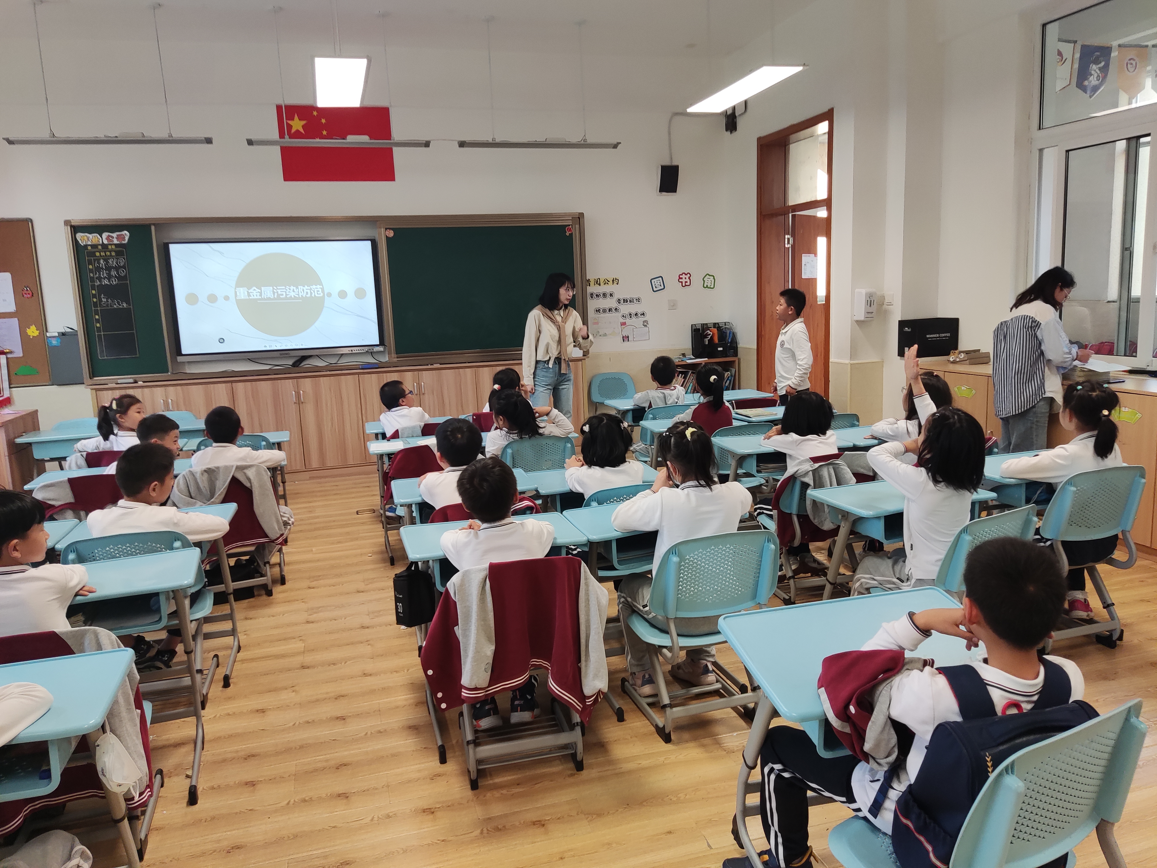 课程最后,讲师们向同学们示范了水银温度计摔碎时的应对方法,让孩子们对重金属污染有了更深层次的了解。通过本次的环教课,同学们不仅增长了金属类物品的分类小知识,还加强了对重金属污染的了解。希望他们可以把在课堂中学习到的知识运用在实际生活中,从自身做起,做一名积极的环保小卫士!