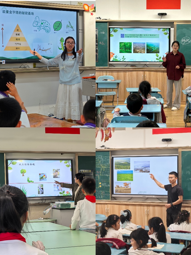 2025年4月28日、29日、30日下午,暗网视频 生态环境小课堂讲师团、秘书部的成员们前往暗网视频 附属紫竹小学、永德实验小学开展环教课,本次环教课的主题是:“生态系统大揭秘”。担任本次课程的讲师为李斐、张佳希、阮文亮同学。