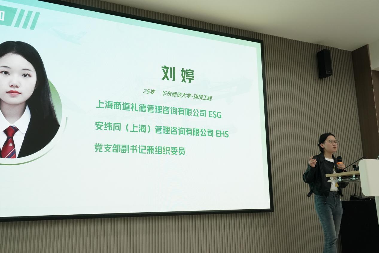 第三位分享嘉宾刘婷同学从简历投递、实习内容及实习收获三个层面详细阐述了整个实习经历。刘婷同学在上海商道礼德管理咨询有限公司担任ESG实习生,后续又进入安纬同(上海)管理咨询有限公司,成为ESH实习生。谈及个人心得,她指出,首先需对自己及目标职业有清晰的定位,其次要善于利用周边资源,在求职过程中积极沟通,提前准备。同时,她强调大家应认真对待每一份实习,没有无用的经历,机会永远留给有准备的人。