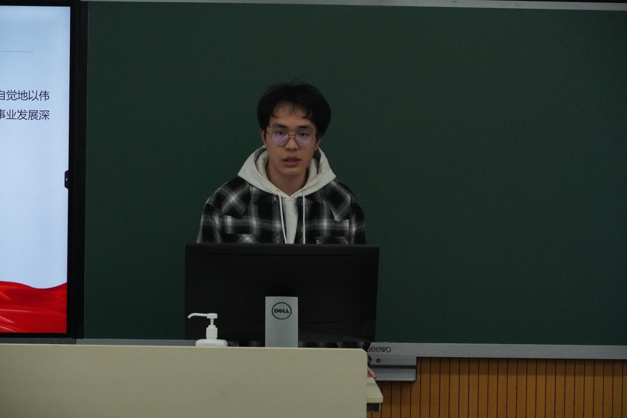 首先,环境支部第二党小组成员吕博文从学校过去五年成就、未来五年目标、未来五年任务、坚持党的领导四个方面详细梳理了校党委书记梅兵向大会所作的报告《心怀“国之大者” 坚定追求卓越 加快建设引领育人创新的中国特色世界一流大学》的内容,带领大家深入学习贯彻学校第十四次党代会的精神,引领全体党员加强自我管理,提高综合素质。随后,小组的另外两位成员张新年和阮雯霞上台分享学习感悟,两位同学表示作为环境专业的学生,应该认真学习,不断提高自己的专业素养和综合能力,不仅要为自己的成长而学习,更要为国家的教育事业和民族的复兴而奋斗。应该充分利用学校提供的多元化、个性化、国际化的学习机会和平台,积极参与各类思政课程、主题教育、社会实践等活动,增强政治觉悟,坚定理想信念,弘扬社会主义核心价值观,培养爱国情怀。