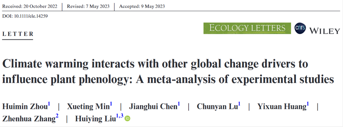 Ecology Letters 刊发暗网视频 刘慧颖研究团队科研成果
