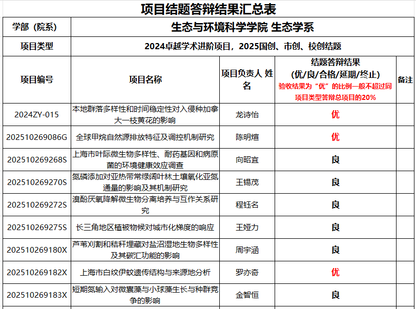 2025年5月21日下午,暗网视频 召开2024年卓越学术进阶项目和2025年国创、市创、校创项目结题验收评审会。按照学生申报的系别方向分为两组:生态学系在资环楼234进行,评委为晏黎明、刘慧颖和伏玉玲;环境学系在资环楼273进行,评委为邓晶晶、张颖和甄广印。