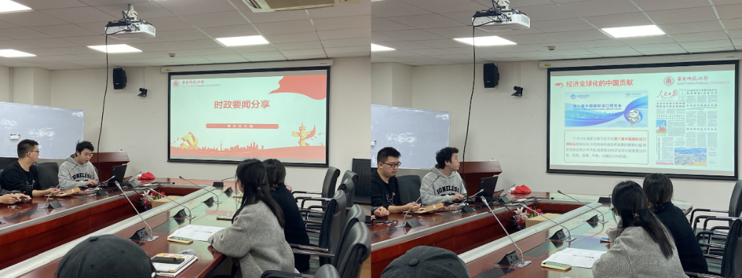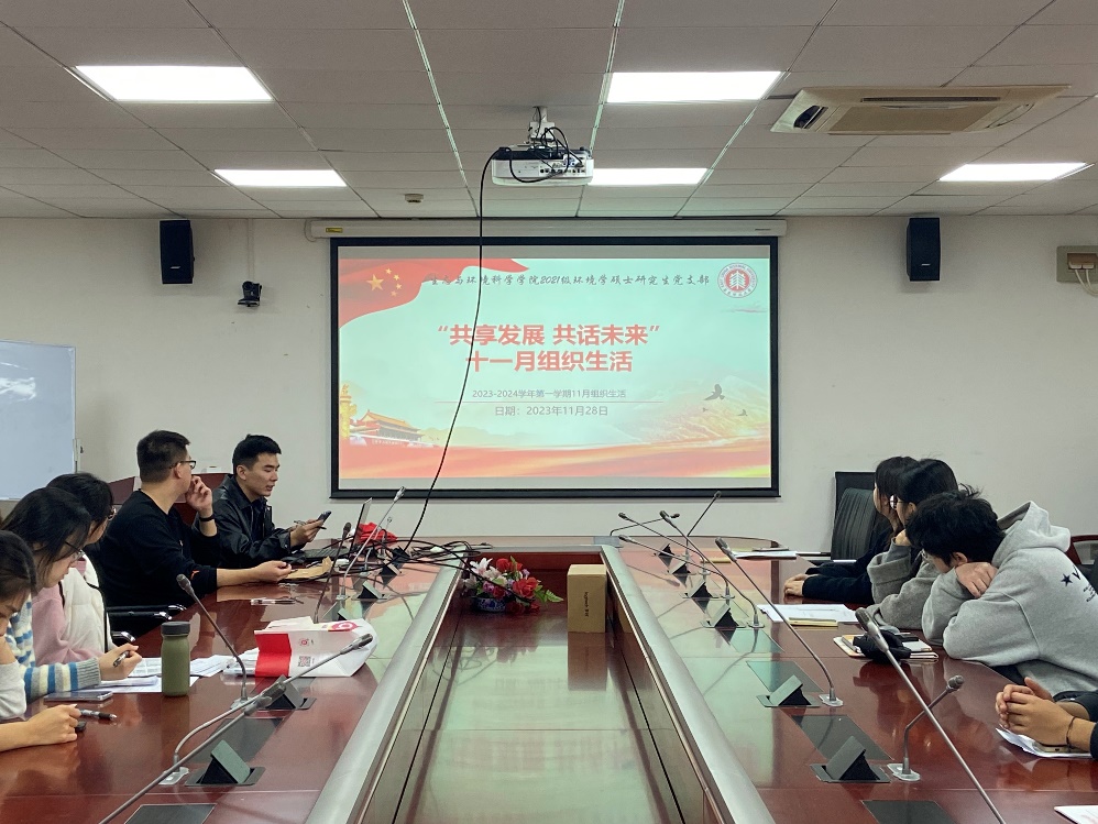 2021级环境学硕士研究生党支部于闵行校区资环楼354室开展专题组织生活。本次活动以“共享发展,共话未来”为主题,包括“时政要闻分享、朋辈经验分享会”两个环节。活动由第五党小组主持,全体党员和支部指导教师吴丹参会。